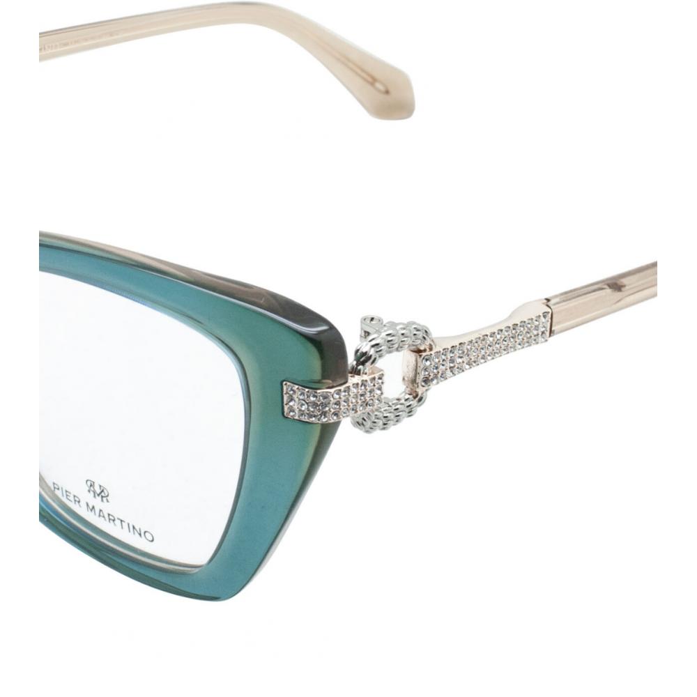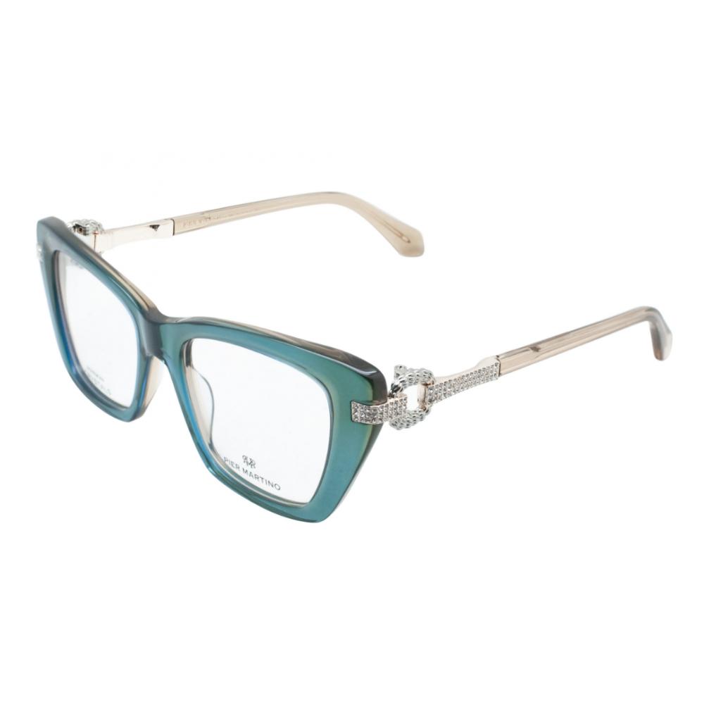 Optical frame in petrol acetate with gold metal temples, beige acetate tips and clear crystals