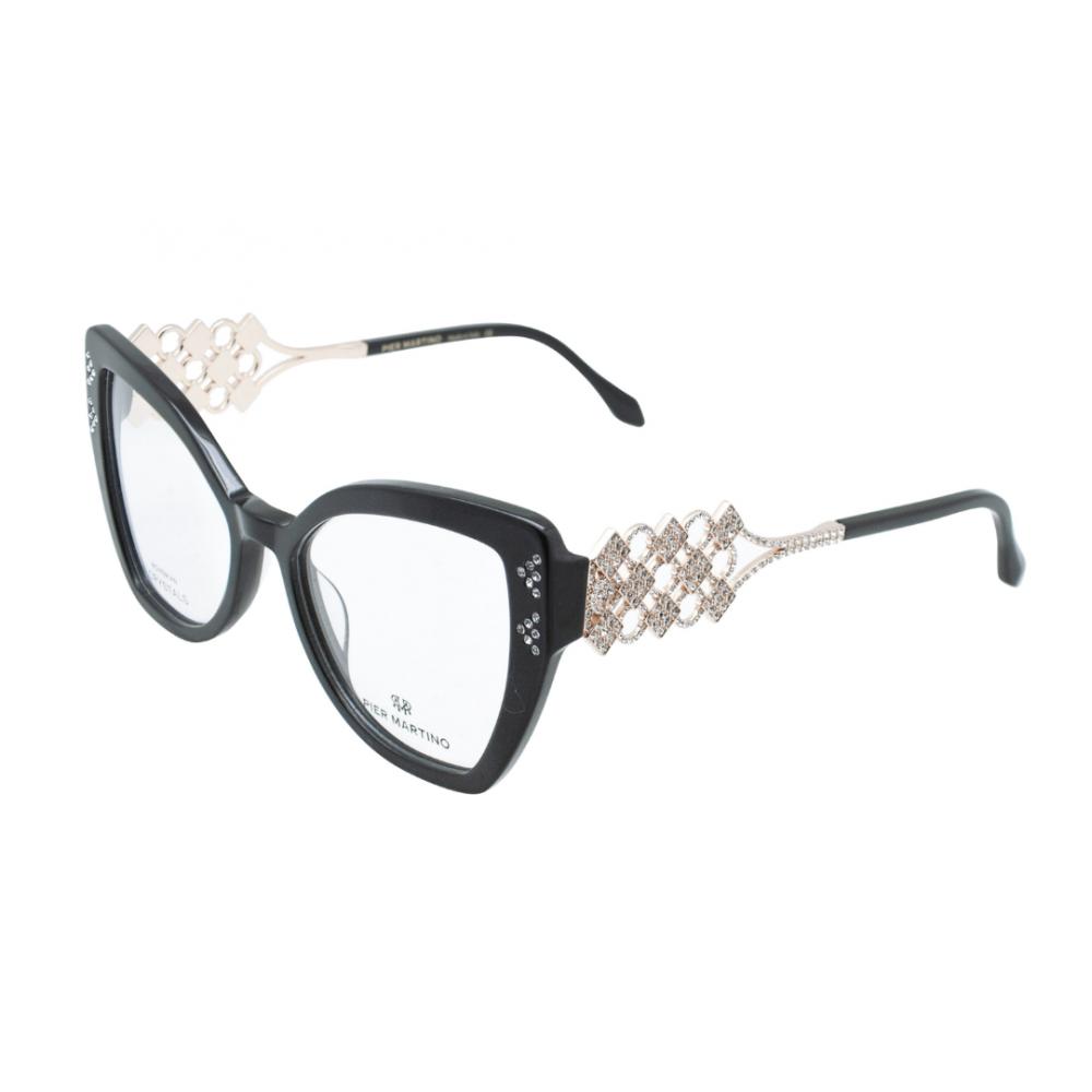 Optical frame in black acetate with gold metal temples, black acetate tips and clear crystals