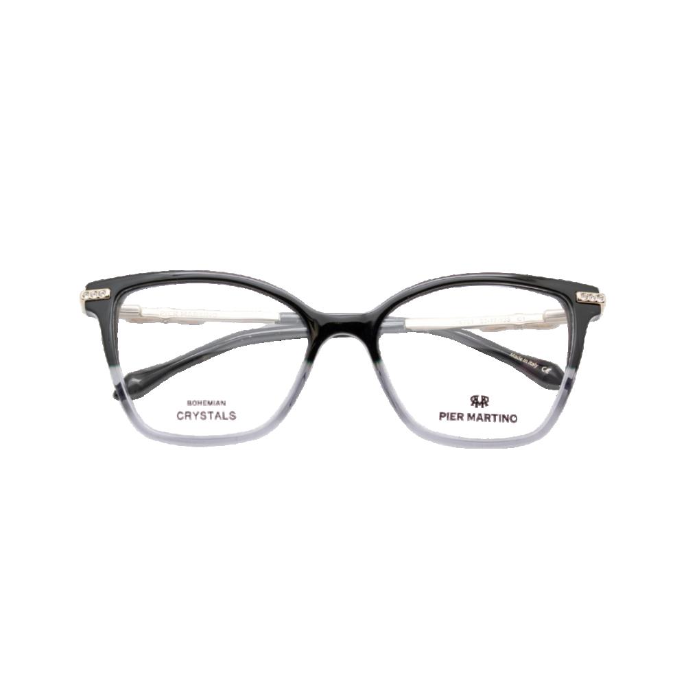 Optical frame in grey acetate with silver temples and clear crystals