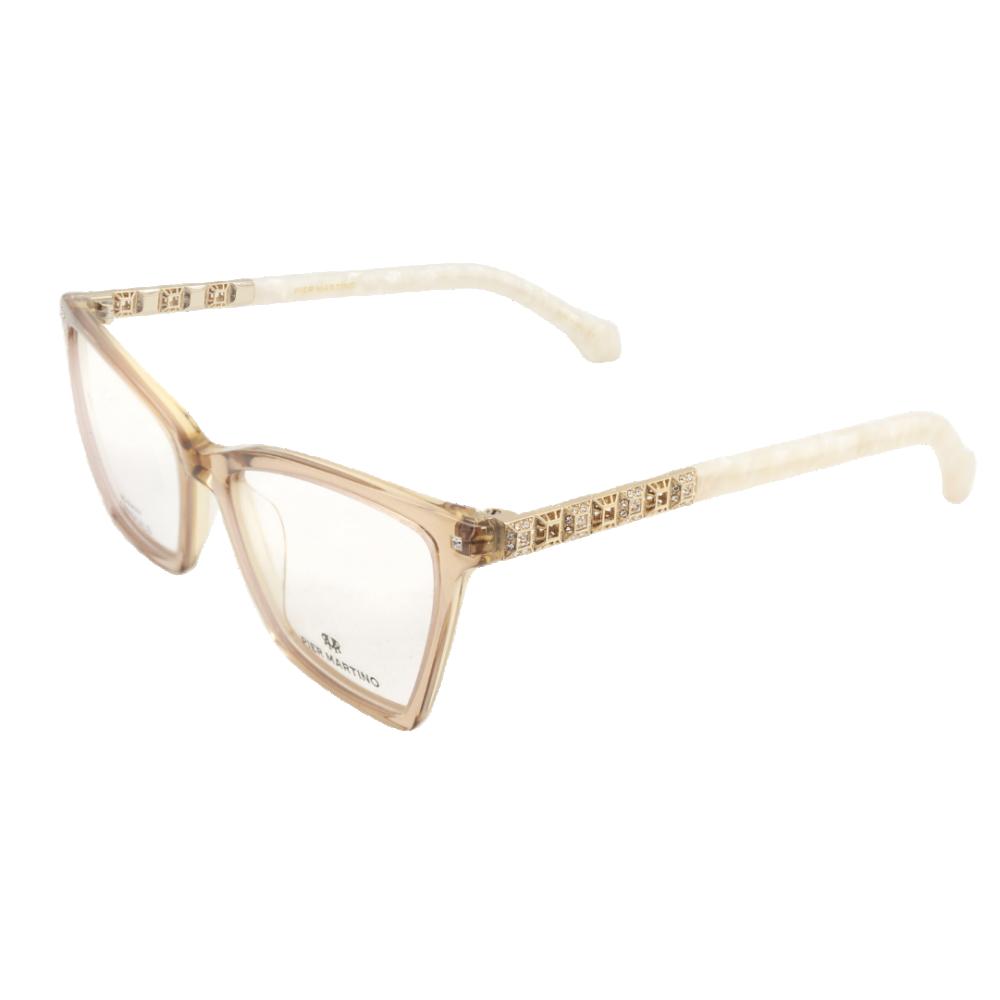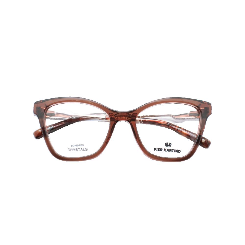 Optical frame in crystal brown acetate with golden metal temples and clear crystals