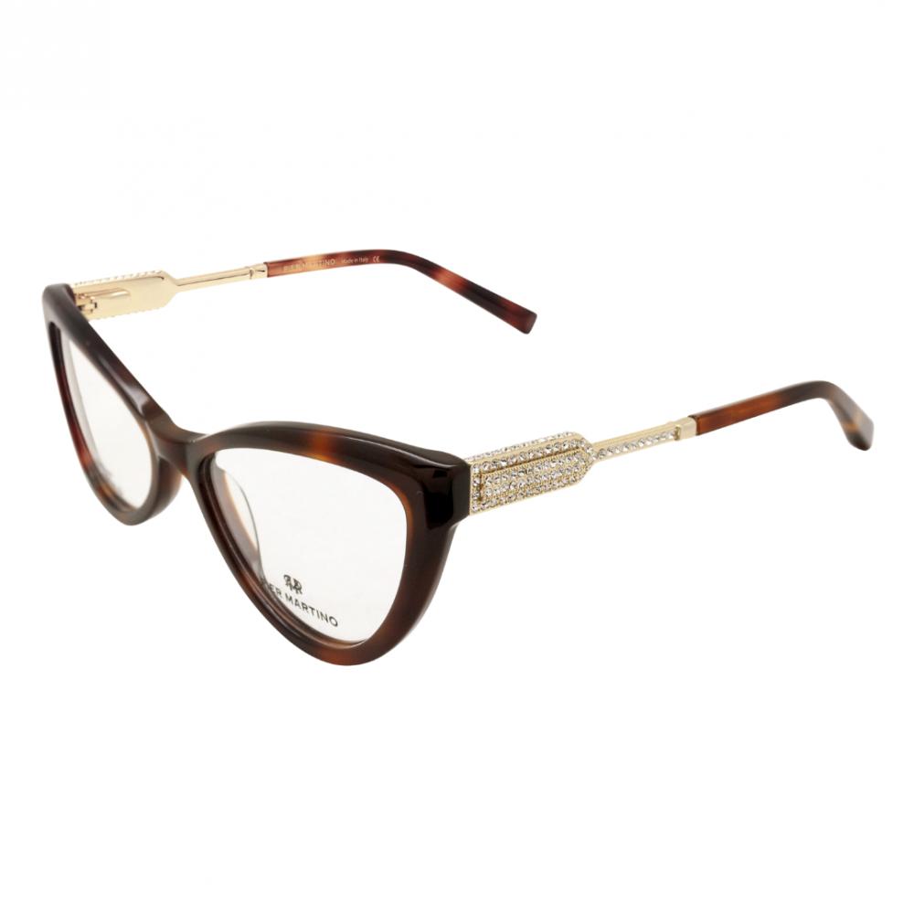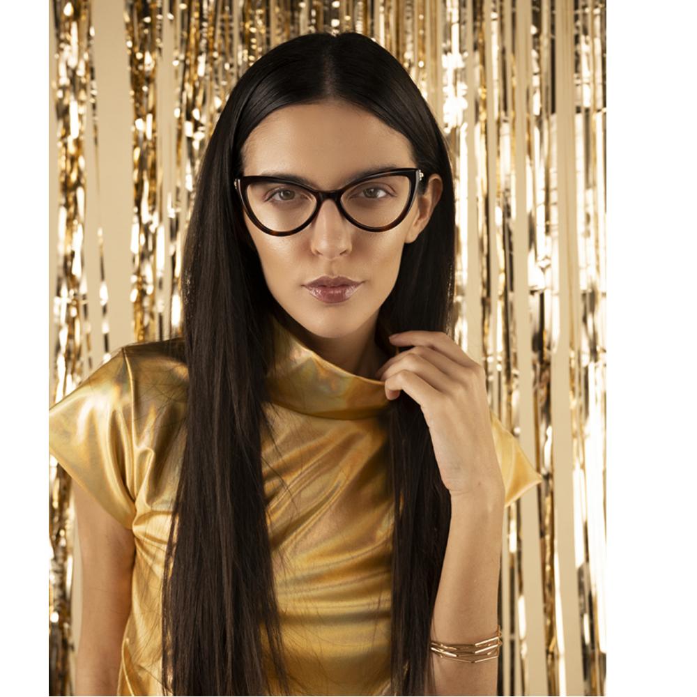 Optical frame in dark demi acetate with golden metal temples and clear crystals